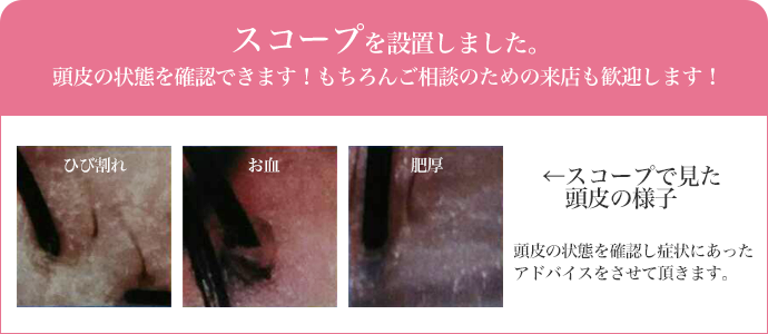 お客様の頭皮の状態をチェックし、トラブルの根本的な原因を調べます。